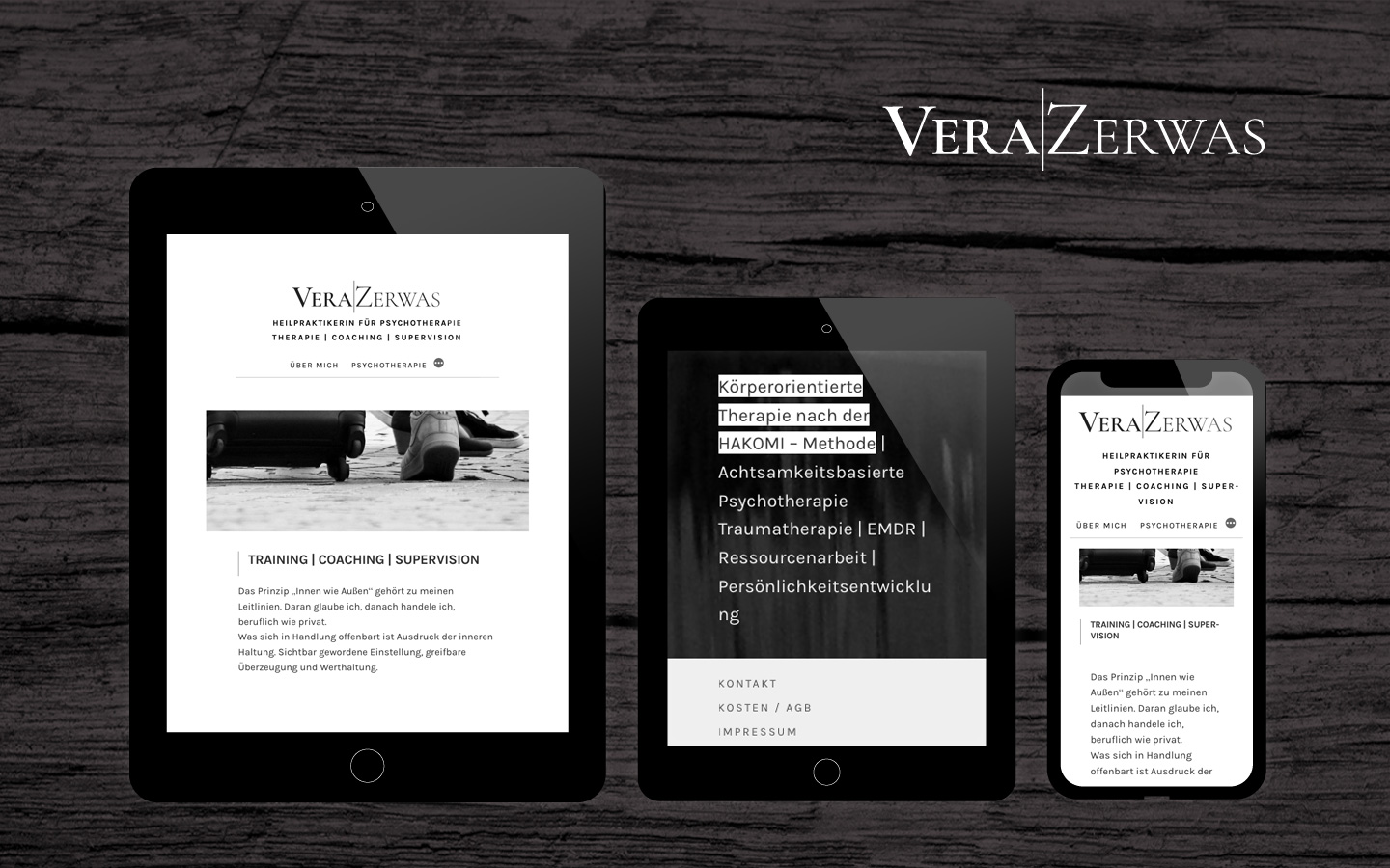 Ein reines Schwarz-Weiß Design, reduziert, minimalistisch war gefragt und entstand hier für eine Heilpraktikerin für Psychotherapie, die Coachings und Supervision anbietet.